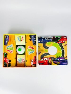 სასწავლო-შემეცნებითი ბარათები – მოიცავს 16 მყარ მუყაოზე დამზადებულ ბარათს, სადაც გამოსახულია ფერადი ილუსტრაციები და სამ ენაზე (ქართული, ინგლისური, რუსული) დაწერილი სიტყვები. ბარათები ეხმარება ბავშვებს ახალი სიტყვების დამახსოვრებაში, სხვადასხვა თემის ამოცნობასა და ენების შესწავლაში. შესანიშნავია როგორც სკოლამდელი ასაკის ბავშვებისთვის, ასევე მათთვის, ვინც იწყებს უცხო ენების შესწავლას თამაშითა და სურათების მეშვეობით.