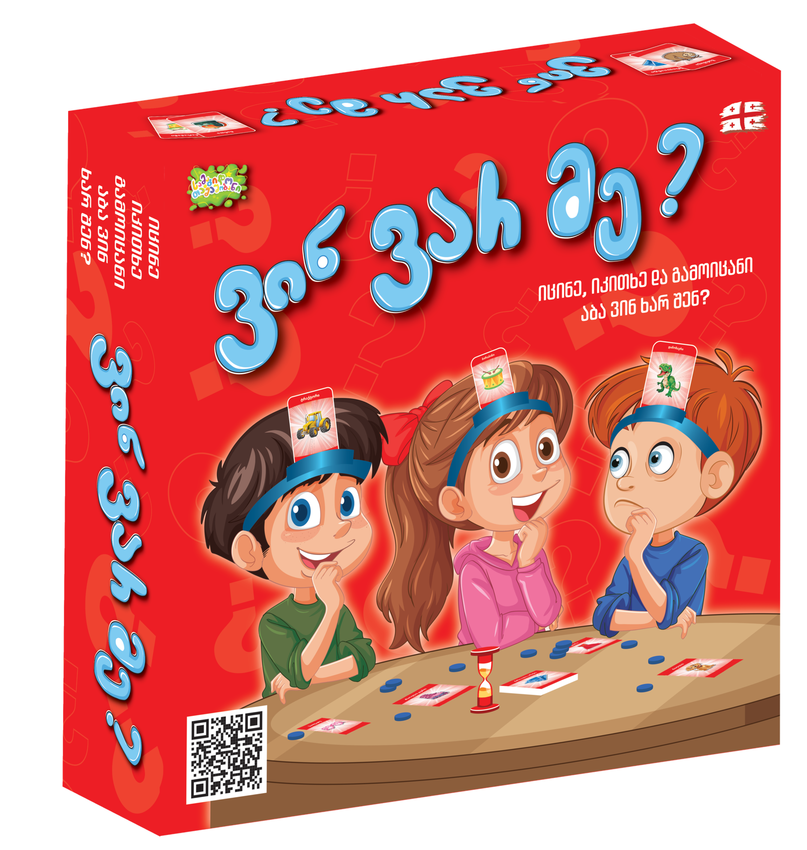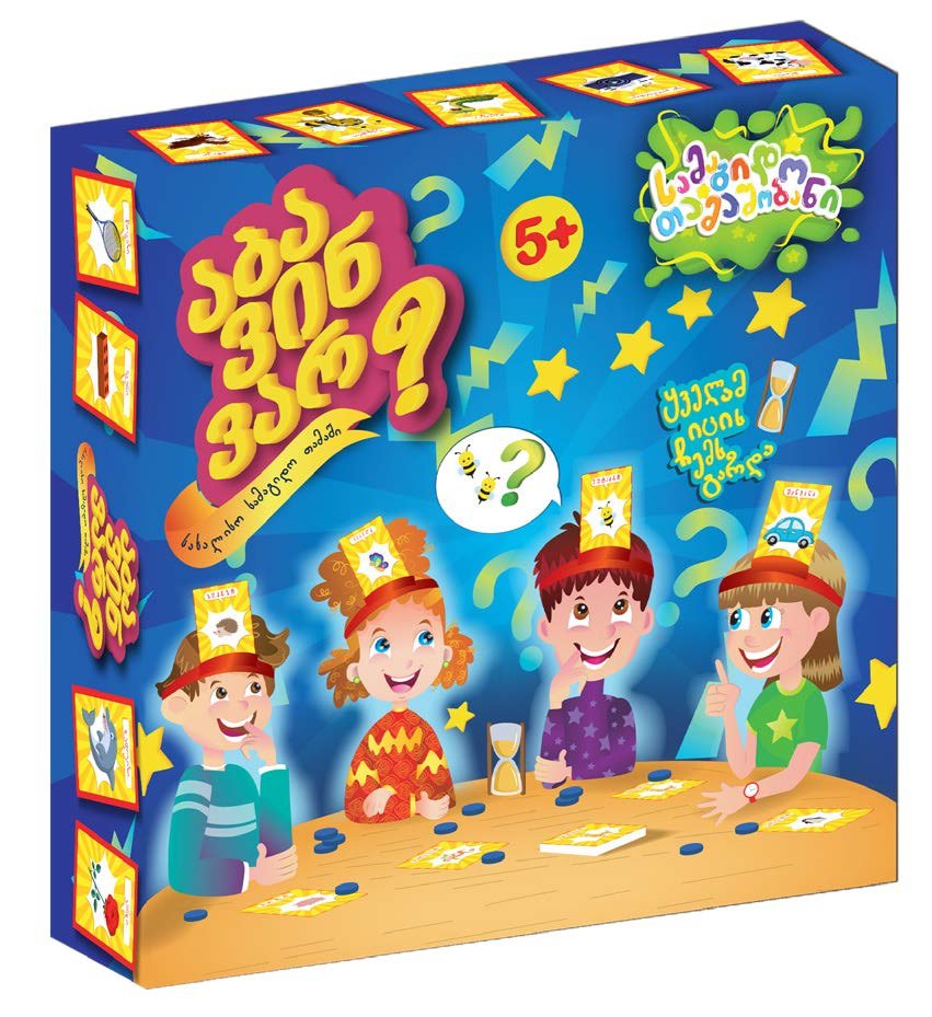 სახალისო სამაგიდო თამაშში წესები მარტივია, მანამ ვერ გაიგებ ,,რა” ხარ სანამ კითხვებს არ დასვამ!( შეიძლება იყო თევზი, მანქანა, ფუტკარი ან თუნდაც ზღარბი) 75 ცალი შუბლზე მისამაგრებელი ბარათი კი თამაშის მრავალფეროვნებას უწყობს ხელს.