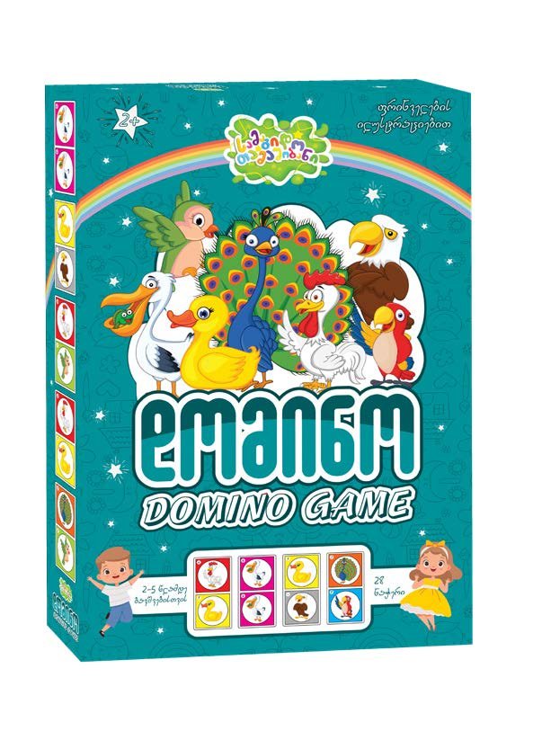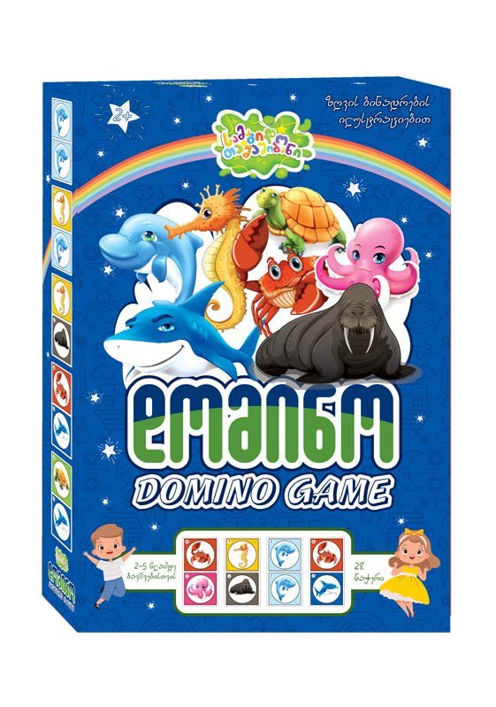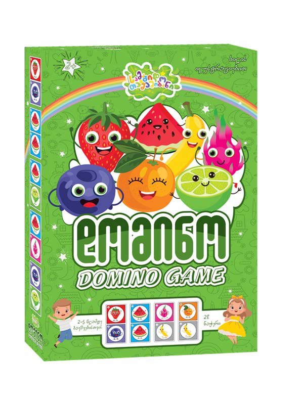 საბავშვო დომინო – კლასიკური შემეცნებითი თამაში მუყაოზე დამზადებული გამძლე ბარათებით. ფერადი ილუსტრაციები ეხმარება ბავშვს ლოგიკური აზროვნების, ყურადღებისა და შედარების უნარის განვითარებაში. შესაფერისია ოჯახთან ან მეგობრებთან ერთად სასიამოვნო დროის გასატარებლად.