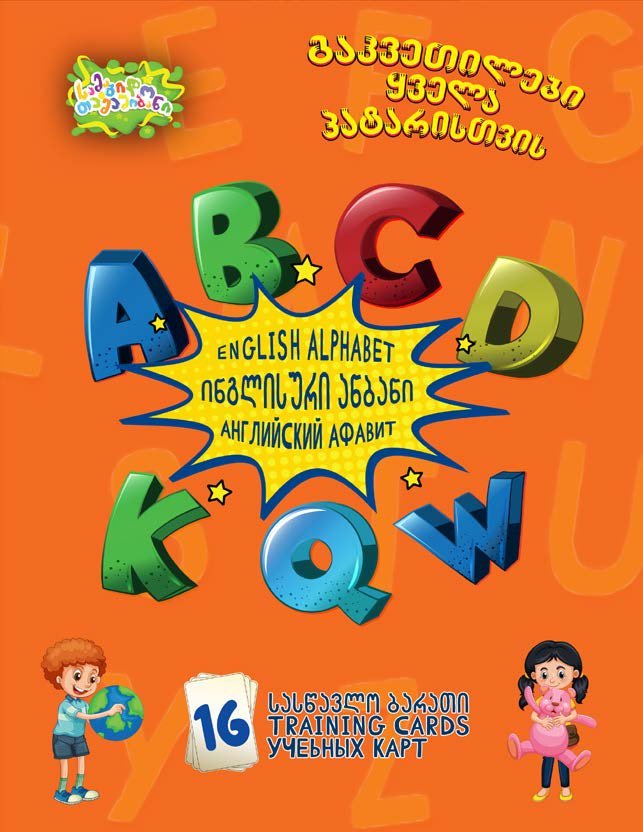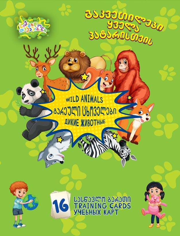 სასწავლო-შემეცნებითი ბარათები – მოიცავს 16 მყარ მუყაოზე დამზადებულ ბარათს, სადაც გამოსახულია ფერადი ილუსტრაციები და სამ ენაზე (ქართული, ინგლისური, რუსული) დაწერილი სიტყვები. ბარათები ეხმარება ბავშვებს ახალი სიტყვების დამახსოვრებაში, სხვადასხვა თემის ამოცნობასა და ენების შესწავლაში. შესანიშნავია როგორც სკოლამდელი ასაკის ბავშვებისთვის, ასევე მათთვის, ვინც იწყებს უცხო ენების შესწავლას თამაშითა და სურათების მეშვეობით.
