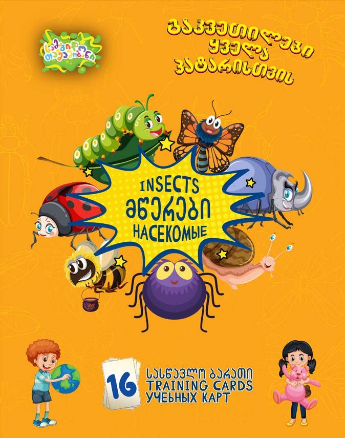 სასწავლო-შემეცნებითი ბარათები – მოიცავს 16 მყარ მუყაოზე დამზადებულ ბარათს, სადაც გამოსახულია ფერადი ილუსტრაციები და სამ ენაზე (ქართული, ინგლისური, რუსული) დაწერილი სიტყვები. ბარათები ეხმარება ბავშვებს ახალი სიტყვების დამახსოვრებაში, სხვადასხვა თემის ამოცნობასა და ენების შესწავლაში. შესანიშნავია როგორც სკოლამდელი ასაკის ბავშვებისთვის, ასევე მათთვის, ვინც იწყებს უცხო ენების შესწავლას თამაშითა და სურათების მეშვეობით.