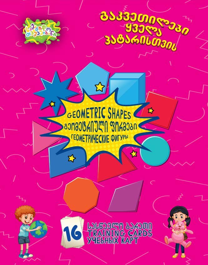 სასწავლო-შემეცნებითი ბარათები – მოიცავს 16 მყარ მუყაოზე დამზადებულ ბარათს, სადაც გამოსახულია ფერადი ილუსტრაციები და სამ ენაზე (ქართული, ინგლისური, რუსული) დაწერილი სიტყვები. ბარათები ეხმარება ბავშვებს ახალი სიტყვების დამახსოვრებაში, სხვადასხვა თემის ამოცნობასა და ენების შესწავლაში. შესანიშნავია როგორც სკოლამდელი ასაკის ბავშვებისთვის, ასევე მათთვის, ვინც იწყებს უცხო ენების შესწავლას თამაშითა და სურათების მეშვეობით.