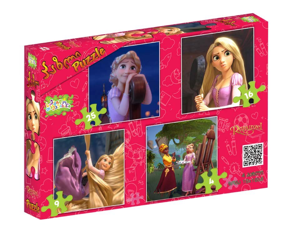 სამაგიდო პაზლების ნაკრები, რომელიც შეიცავს 4 სხვადასხვა სირთულის პაზლს (4, 9, 16 და 25 ნაჭერი). თითო პაზლი წარმოდგენილია 16×16 სმ ზომაში, მაღალი ხარისხის მუყაოზე დაბეჭდილი ფერადი ილუსტრაციით. იდეალურია ბავშვებისთვის ფერების, ფორმების და ყურადღების განვითარებისთვის.